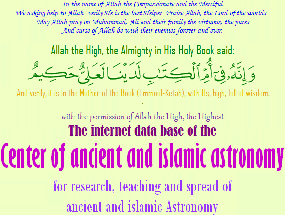 => Ancient and Islamic Astronomy center: Inauguration of database